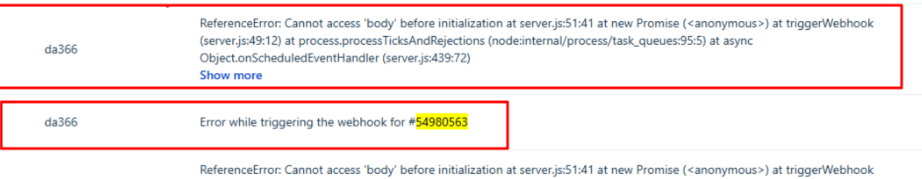 console.error(`Error while triggering webhook for #${ticketID}`);