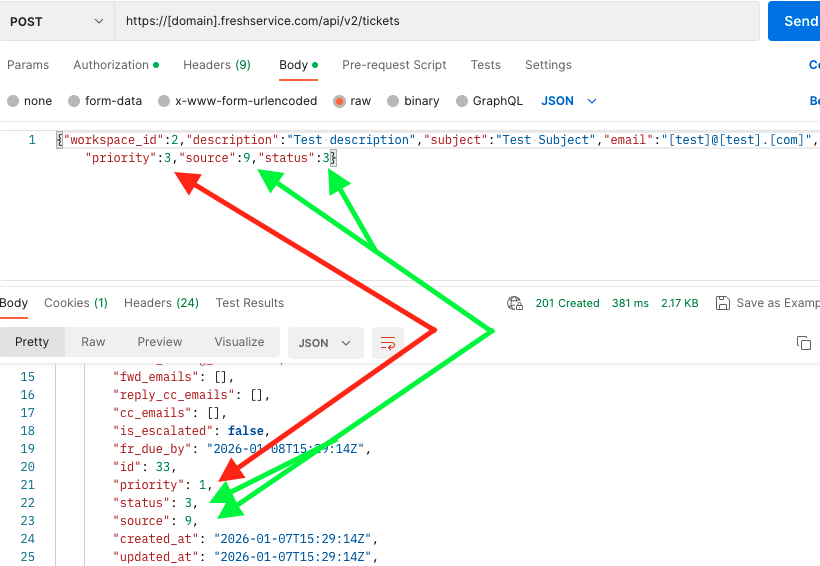 While I am able to create a Ticket using the /api/v2/tickets API endpoint, the passed priority value is ignored, it always creates the ticket with the default priority: 1.