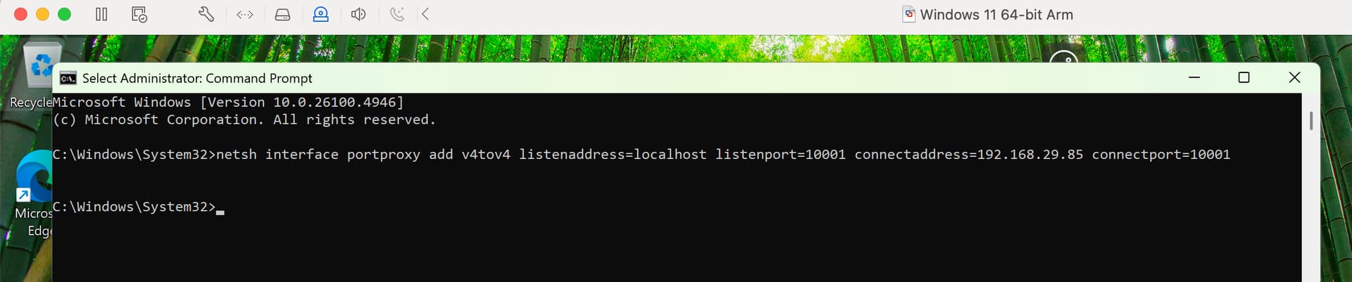Now, we need to tell Windows inside the VM to forward all requests from its own localhost:10001