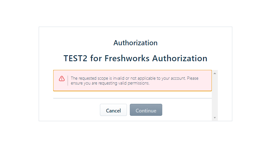 Now, when I try to authorize, I receive the following error on the Freshservice login screen: