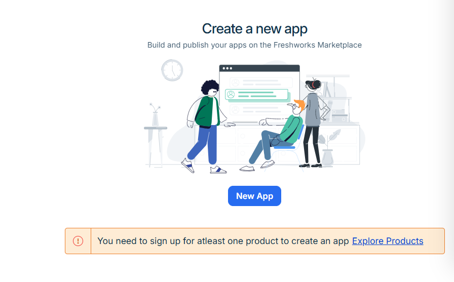 I have 21 days of freshservice access in my freshservice account that is my organization, but when attempting to create an app using my developer account in the same organisation i get the error "You need to sign up for atleast one product to create an app