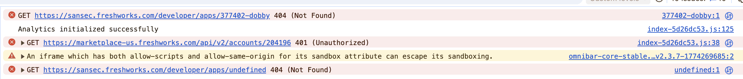 When I click the gear, nothing happens. When I reload, the page hangs indefinitely. Console errors: